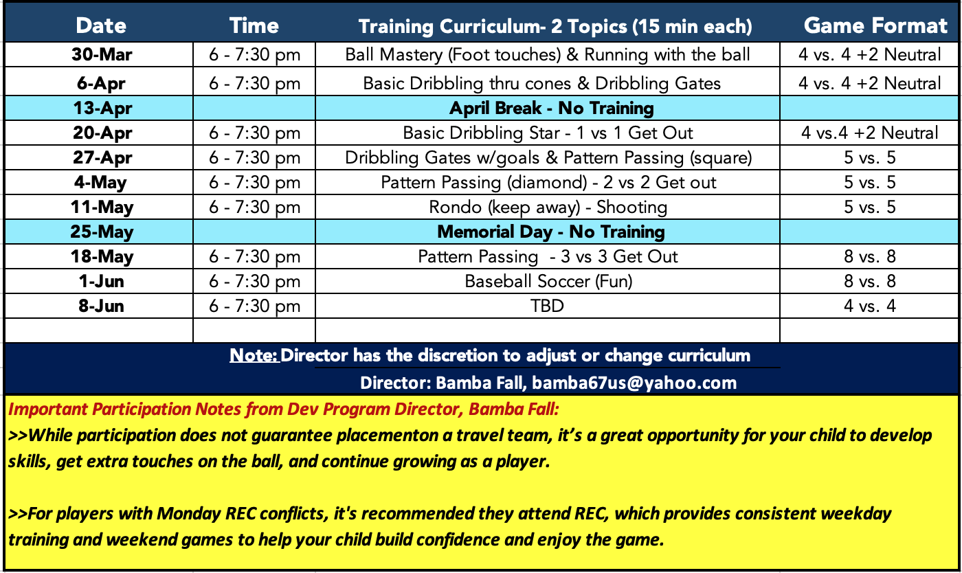 WSA Developmental Mondays u8-u11 – Spring 2026